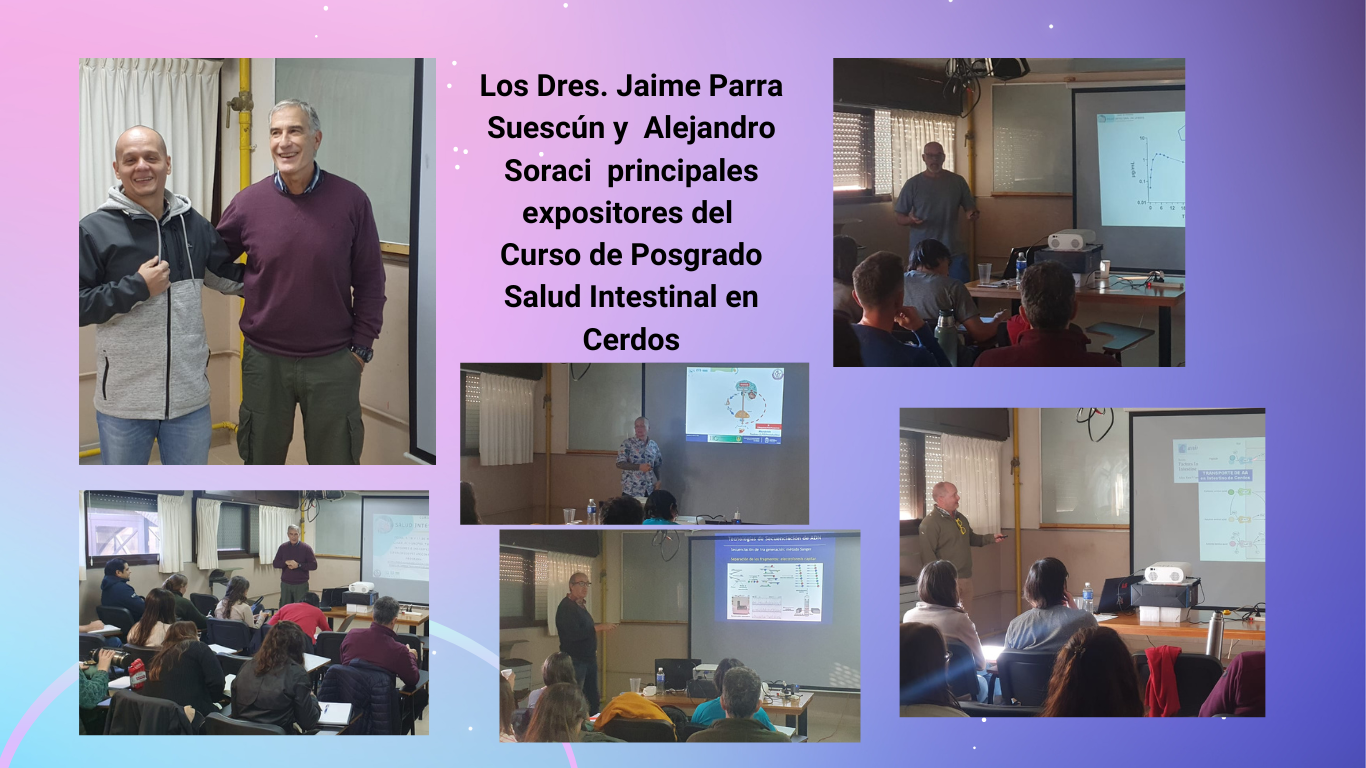 Desde el 9 de mayo se está realizando el Curso de Posgrado “Salud Intestinal en Cerdos” en la Sala de Seminarios de Fisiopatología. Durante las jornadas, los asistentes pudieron escuchar sobre temas de nutrición, composición del microbioma, el uso de antimicrobianos, estrés sobre la salud en cerdos y tecnologías de secuenciación de ADN. El curso explora en forma detallada cómo interactúan los componentes dietéticos, el microbioma intestinal y la fisiología del animal para influir en el crecimiento, la productividad y el bienestar del cerdo.