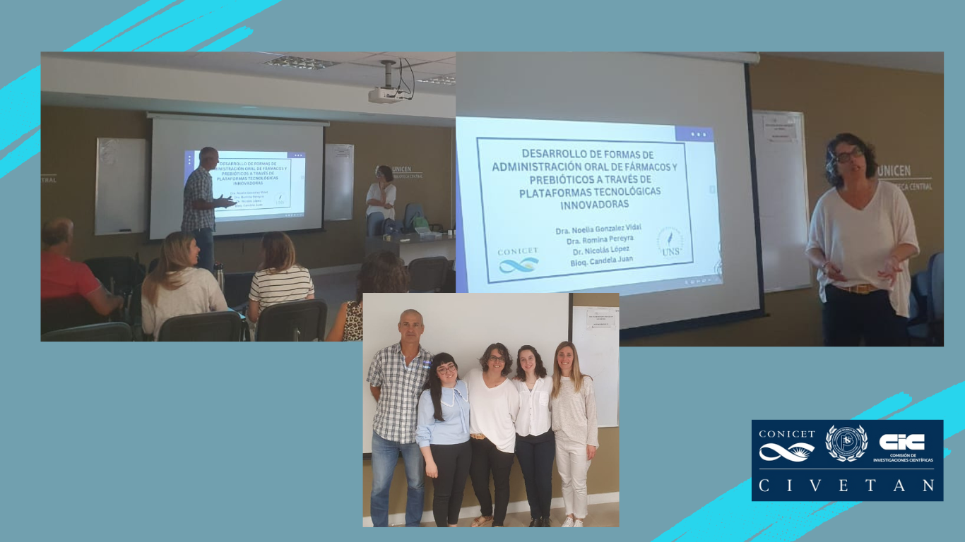 Nos visitó la Dra. Noelia González Vidal, docente-investigadora de la cátedra de Control de Calidad de Medicamentos del Departamento de Biología, Bioquímica y Farmacia, de la Universidad Nacional del Sur, quién disertó sobre el desarrollo de formas farmacéuticas para la administración oral de fármacos y prebióticos a través de plataformas tecnológicas innovadoras.
